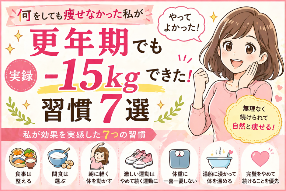 今回は、更年期でも−15kgできた私の習慣を7つご紹介しました。